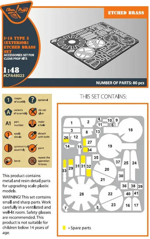 1/48 Clear I-16 type 5 Exterior PE set 48023