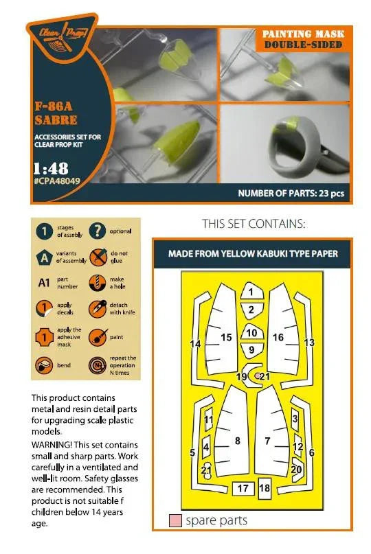 1/48 Clear Prop F-86A Double-Sided Painting Mask (CP) 48049