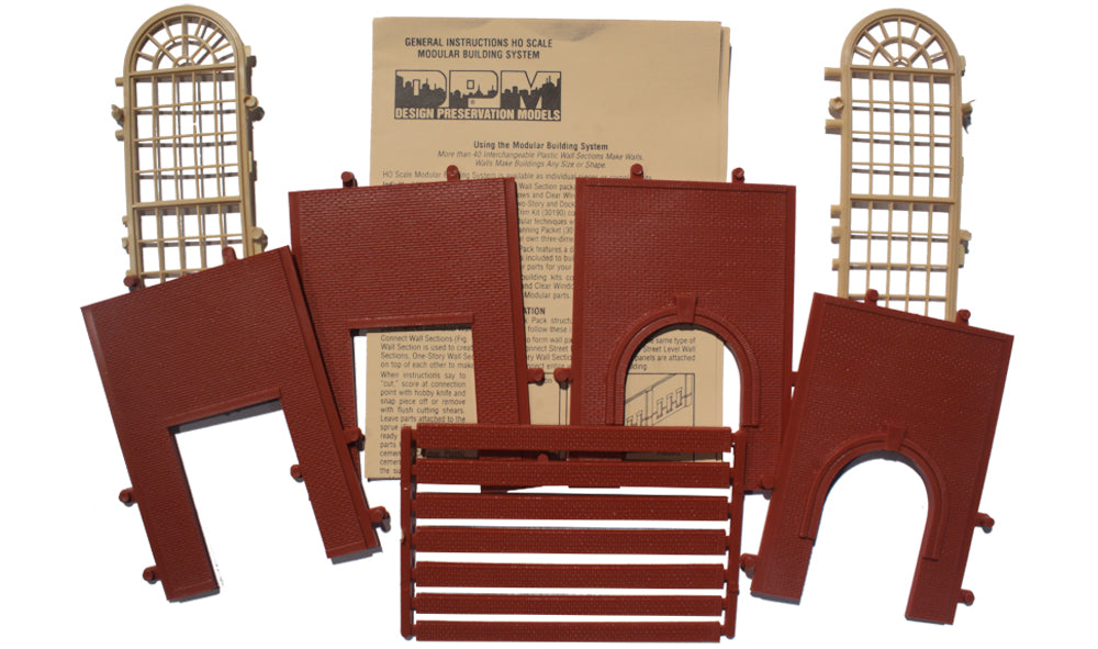 Includes two window sections that are 2 11/16" w x 7 3/8" h (6.82 cm x 18.7 cm), plus pilasters.