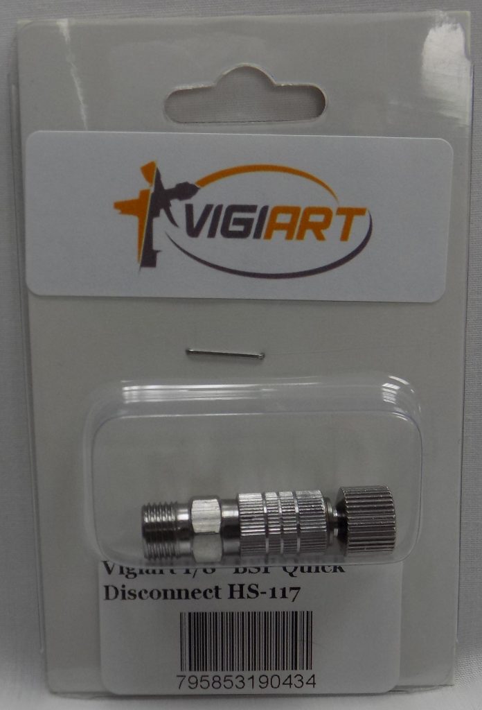 Vigiart HS-117 quick disconnect package showing 1/8 BSP airbrush fitting, product code 434, universal compatibility